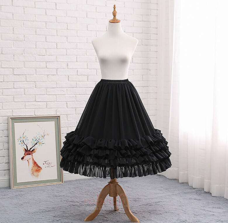 Accueil Petticoat de mariage Black chiffon underskirt, bridal long crinoline, cosplay prom dress chiffon underskirt, puffy skirt, Lolita midi skirt