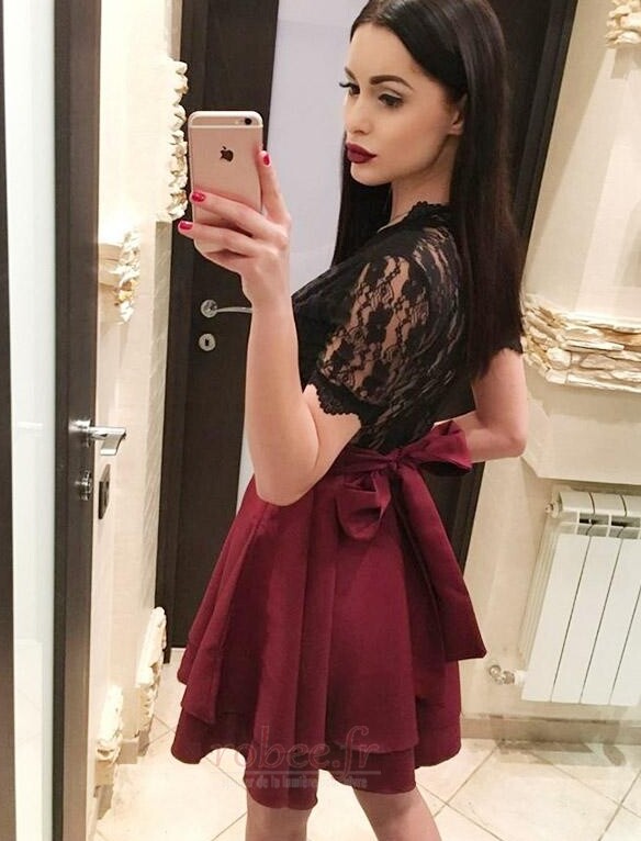 Accueil Robes de cocktail Robes de cocktail Courte Robe de cocktail Automne Orné de Nœud à Boucle Manche Courte