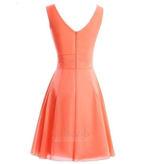 Robe de demoiselle d'honneur Col Carré Mousseline Norme Fermeture à glissière #E2710346