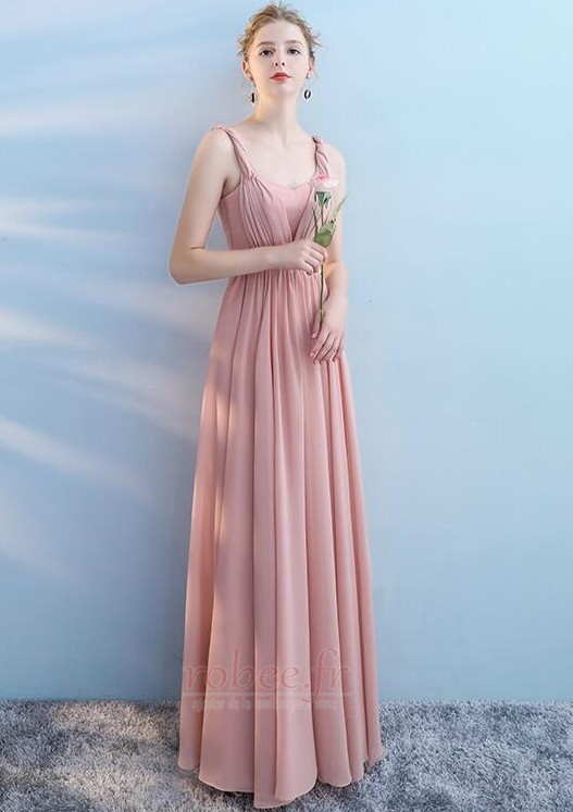 Accueil Robes de demoiselle d'honneur Robes de demoiselle d'honneur Longue Robe de demoiselle d'honneur Mousseline Automne Corsage plissé