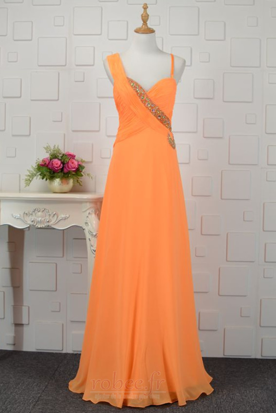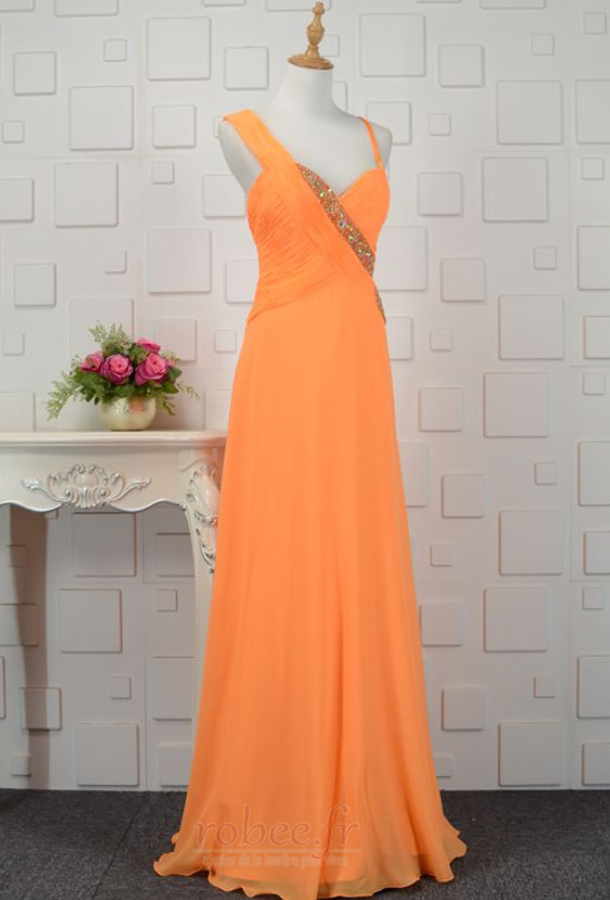 Robe de demoiselle d'honneur Mousseline Col Asymétrique Mariage #E2200207