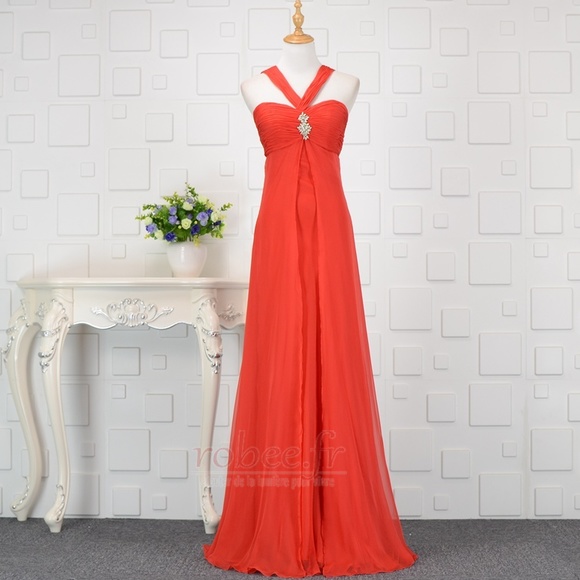 Robe de demoiselle d'honneur Sexy Poire Empire Fermeture à glissière #E2710413