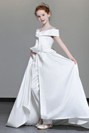 Robe de fille de fleur Satin Drapé Mancheron Naturel taille Longueur Cheville
