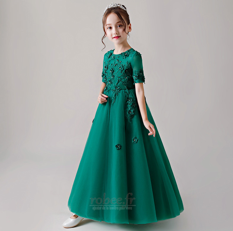 Accueil Robes de fille de fleur Robes de fille de fleur Tulle Robe de fille de fleur Broderie Fermeture éclair Epurée Mariage