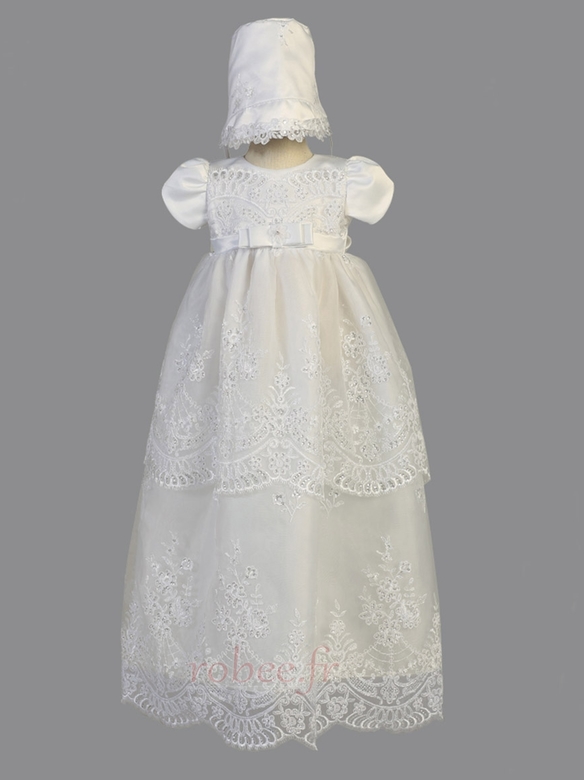 Robe de fille de fleur Chapeau Organza Naturel taille Blanc Petit collier circulaire - Page 1