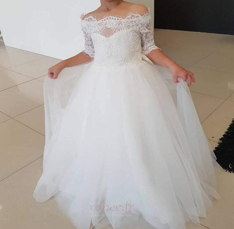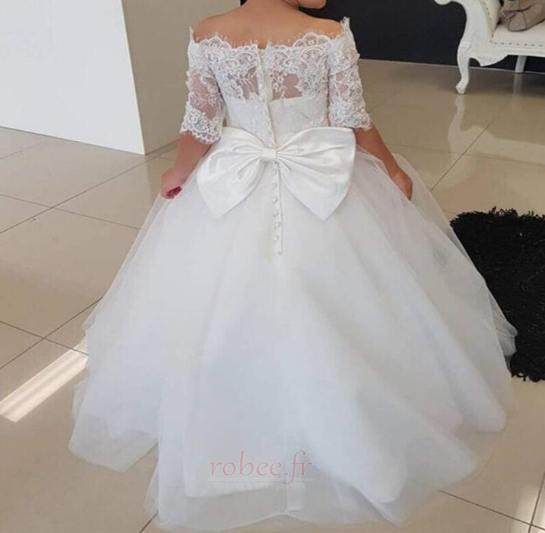 Accueil Robes de fille de fleur Robes de fille de fleur Tulle Robe de fille de fleur Dentelle Formelle Rosée épaule Orné de Nœud à Boucle