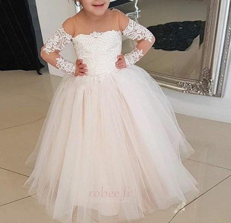 Accueil Robes de fille de fleur Robes de fille de fleur Tulle Robe de fille de fleur Manche Longue Fermeture à glissière Mariage