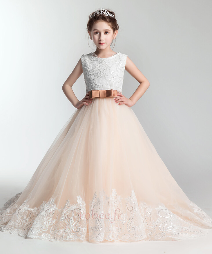 Accueil Robes de fille de fleur Robes de fille de fleur net Robe de fille de fleur Train de petit Sans Manches aligne Médium