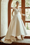 Robe de mariée Manche Courte Longue Satin Poches Col U Profond