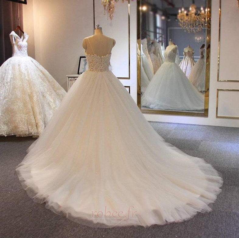 Accueil Robes de mariée Robes de mariée net Robe de mariage Dos nu net Perle A-ligne Sans Manches Longue