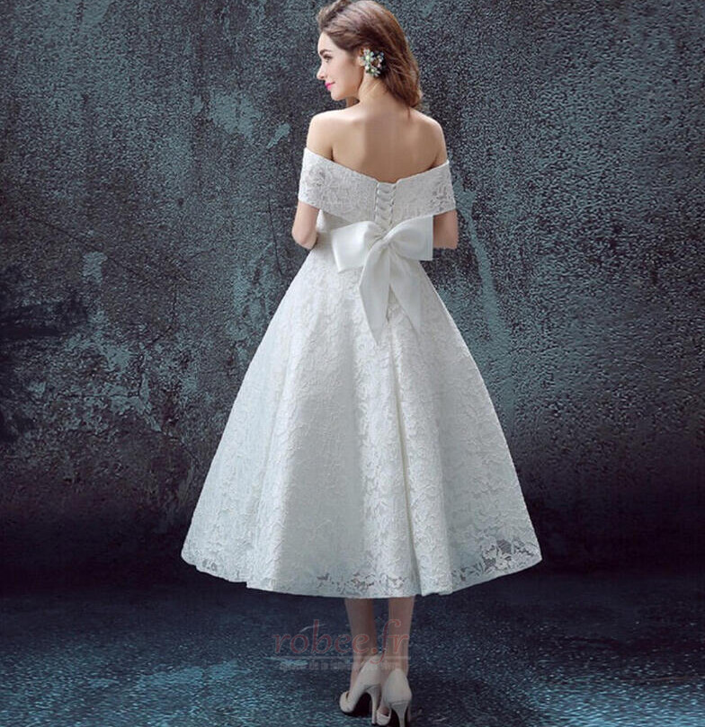 Accueil Robes de mariée Robes de mariée Dentelle Robe de mariage Rosée épaule Mancheron Longueur Mollet Dos nu