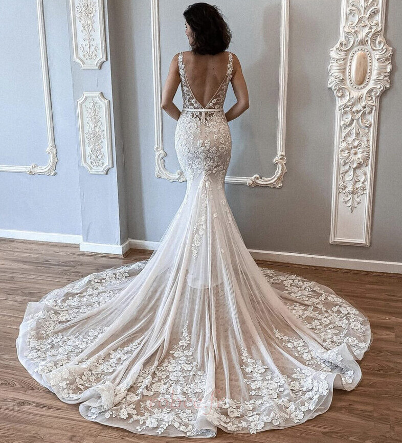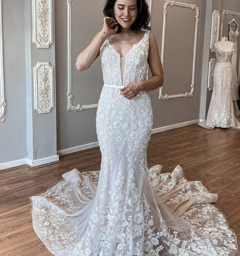 Accueil Robes de mariée Robes de mariée Sirène Robe de mariage Salle noble Traîne Mi-longue Été Sans Manches
