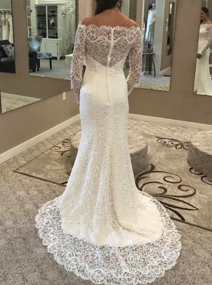 Accueil Robes de mariée Robes de mariée Sirène Robe de mariée Dentelle Norme Fermeture à glissière Manche Longue