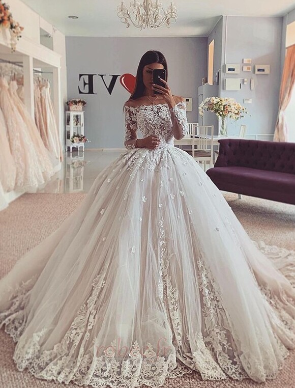 Accueil Robes de mariée Robes de mariée Froid Robe de mariée Manche Aérienne Manche Longue Décalcomanie Naturel taille