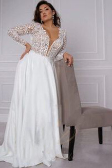 Robe de mariée A-ligne Manche Longue De plein air Longue Col en V
