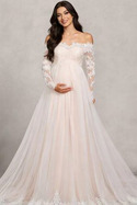 Robe de mariée Taille haute Empire Epurée Manche Longue Traîne Mi-longue