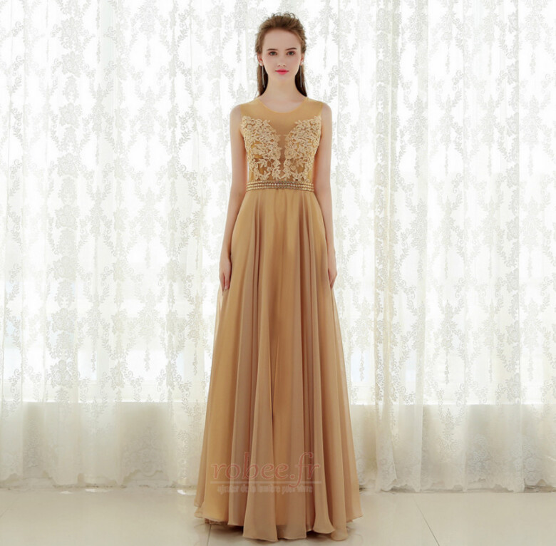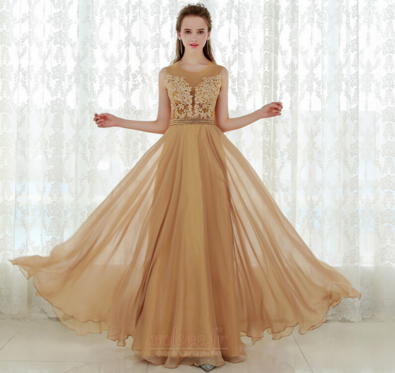 Accueil Robes de soirée Robe de soirée a ligne Mousseline Printemps Cérémonial Naturel taille