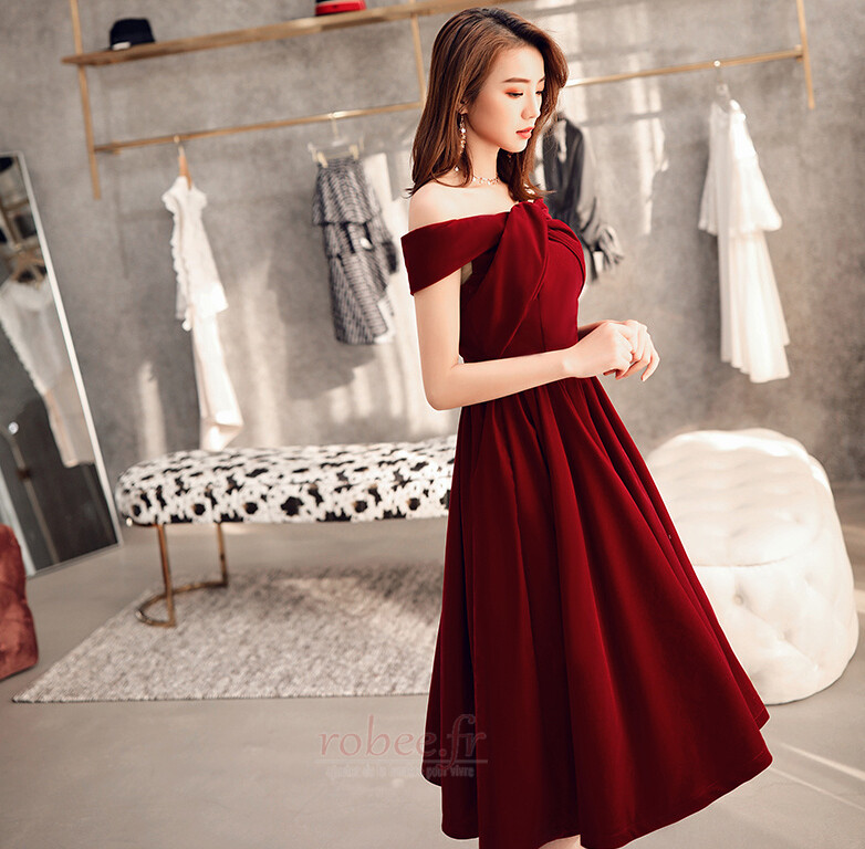 Accueil Robes de soirée Robes de soirée Vintage Robe de soirée Balançoire Rosée épaule Fourreau plissé Manquant