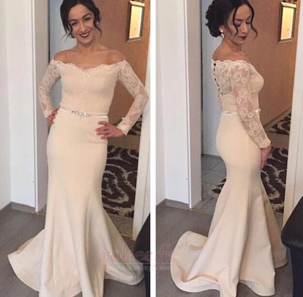 Accueil Robes de soirée Robes de soirée Sirène Robe de soirée Dentelle Manche Aérienne Naturel taille Haute Couvert