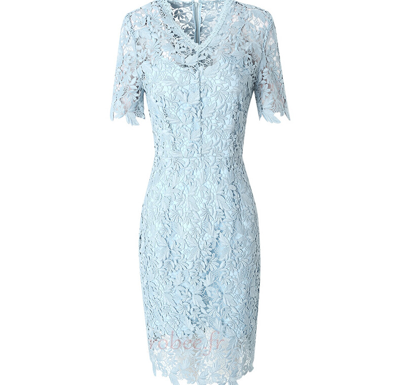 Accueil Robes de soirée Robes de soirée Dentelle Robe de soirée Fermeture à glissière Manche Courte Perle Dentelle