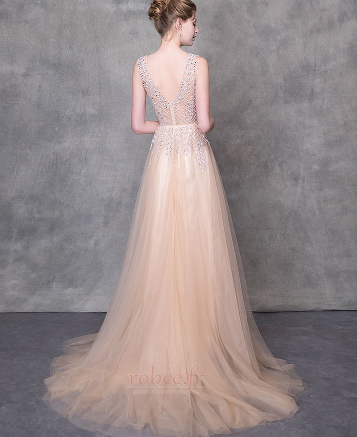 Accueil Robes de soirée Robes de soirée Longue Robe de soirée Festin Col en V Satin Naturel taille Perle A-ligne