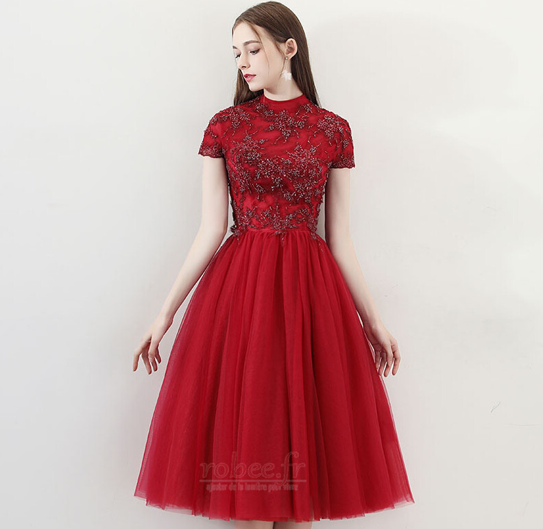 Beaucoup de nos robes comportent des perles scintillantes sur les manches ou la taille. Les couturières professionnelles passent des heures à coudre habilement des perles et des perles pour parfaire un design élégant et classique.