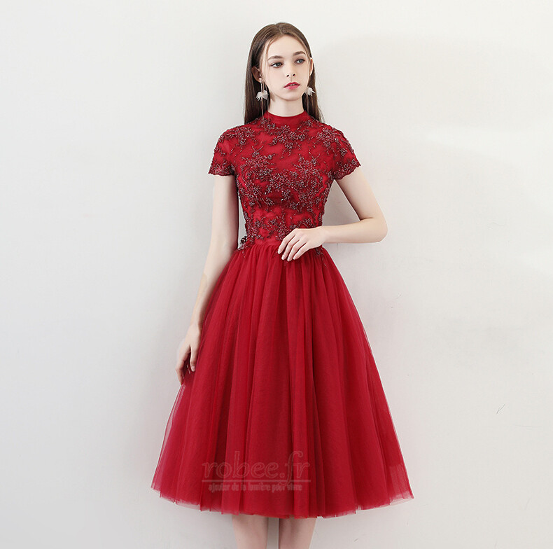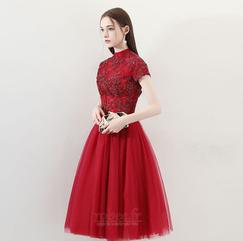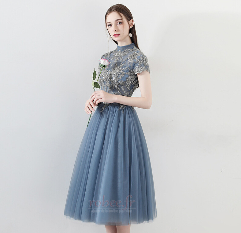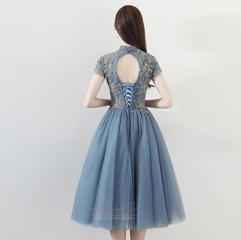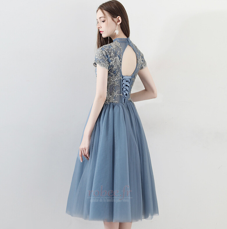 Accueil Robes de soirée Robes de soirée net Robe de soirée Mi-longues aligne Naturel taille Chic Ballon Manche de T-shirt