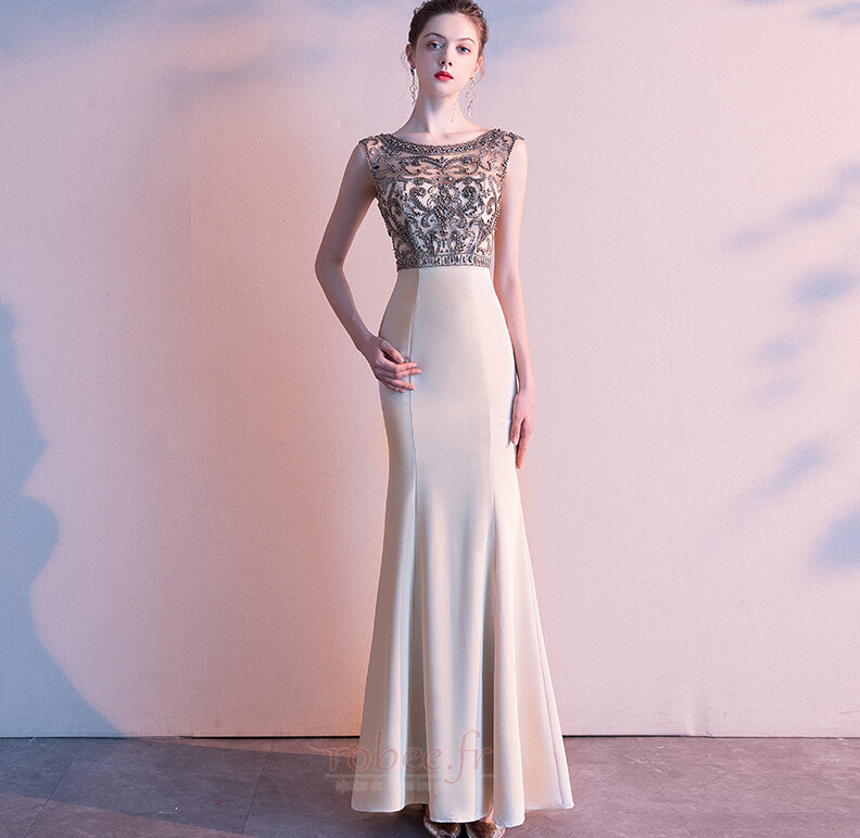 Accueil Robes de soirée Robes de soirée Longue Robe de soirée Mince Maigre Naturel taille Perlé Spandex Col Bateau