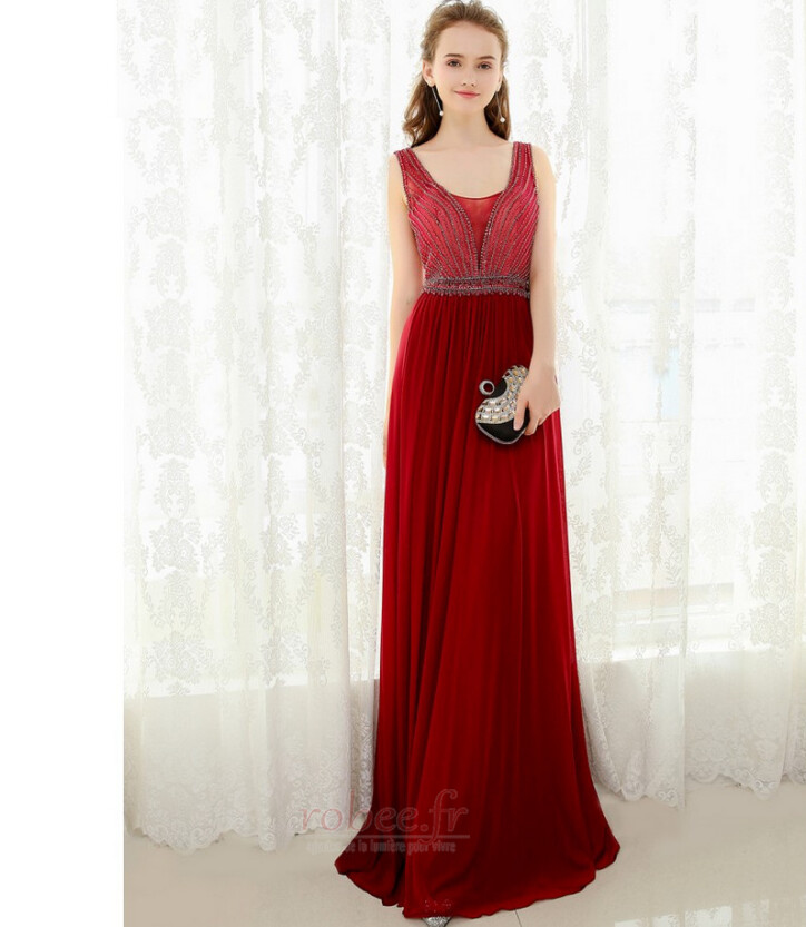 Robe de soirée Mousseline Perlé Haut Bas Glissière Sans Manches #E2205521