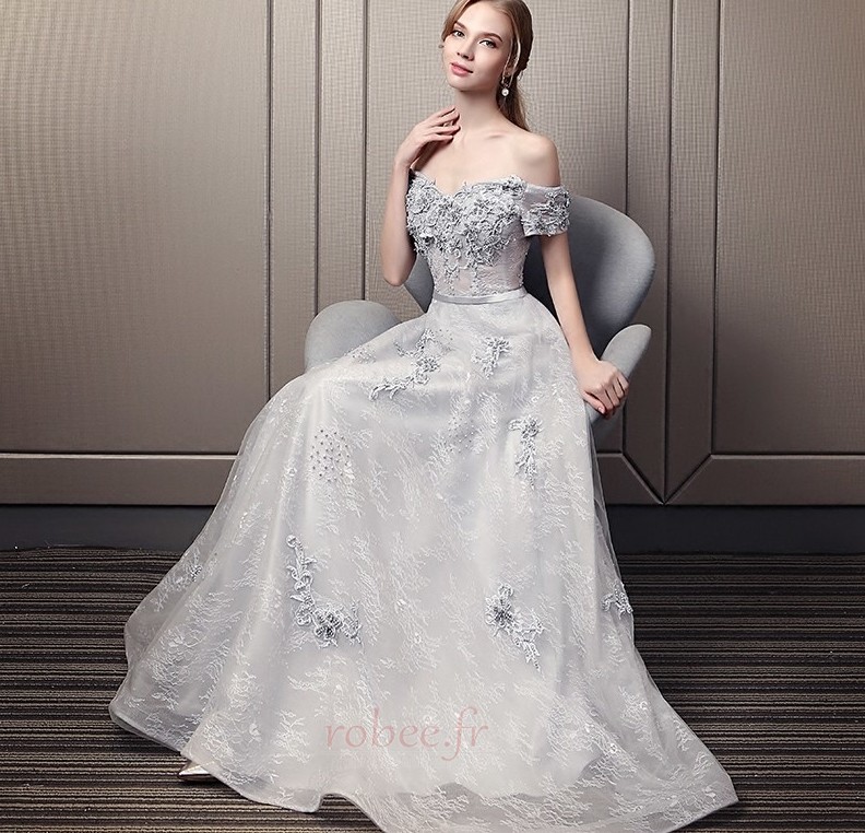 Accueil Robes de soirée Robes de soirée Dentelle Robe de soirée Naturel taille Manche Courte Epurée Mancheron