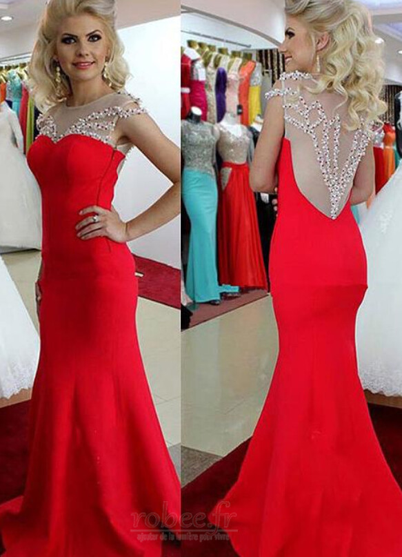 Accueil Robes de soirée Robes de soirée Sirène Robe de soirée Sans Manches Luxueux Perle Mince Satin Petit collier circulaire
