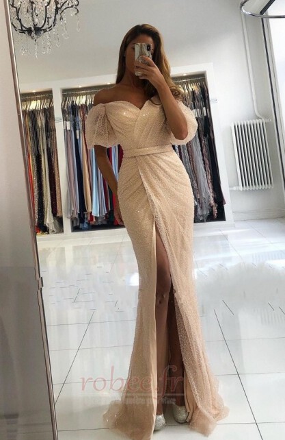 Accueil Robes de soirée Robes de soirée Sirène Robe de soirée Scintillait Exquisite Thigh-High Slit Rosée épaule