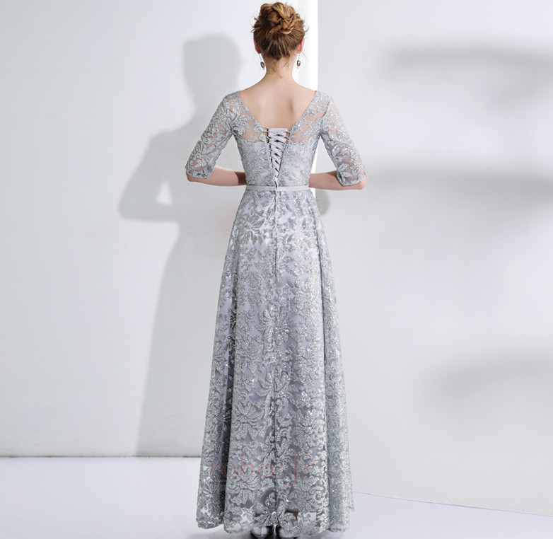 Robe de soirée Scintillait Longueur Cheville Laçage Été A-ligne #E2204727