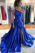 Robe de soirée Milieu dos Festin Longue a ligne Une épaule Satin
