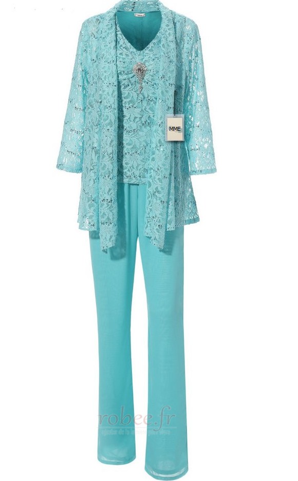 Accueil Robes mères Robe mères Un Costume Luxueux Avec des pantalons Couvert de Dentelle