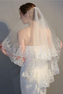 Court Double Voile Voile De Dentelle À Paillettes Délicates Voile De Mariée En Dentelle Court