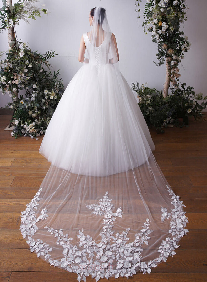 Accueil Voiles de mariage Voile de pétale tridimensionnel 3 mètres de long voile de chapelle voile de mariage mariée